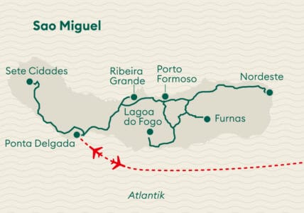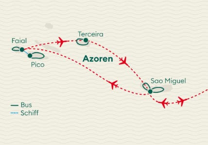 Insgesamt neun Inseln vulkanischen Ursprungs schliesst der Azoren-Archipel im Atlantik ein. Sao Miguel, die grösste Azoren-Insel zieht uns mit ihren mystischen Nebelwäldern, den saftig grünen Teeplantagen, den geheimnisvollen Kraterseen und den atemberaubenden Vulkanlandschaften mit heissen Quellen und Fumarolen sowie der historischen Inselhauptstadt Ponta Delgada in den Bann. Ein Blütenmeer aus Hortensien und der weltweit wohl farbenfrohste Yachthafen erwarten Sie auf der Insel Faial. Auch auf den Azoren zu finden, ist der höchste Berg Portugals mit einer Höhe von 2351 Meter, der der Insel Pico seinen Namen verlieh.