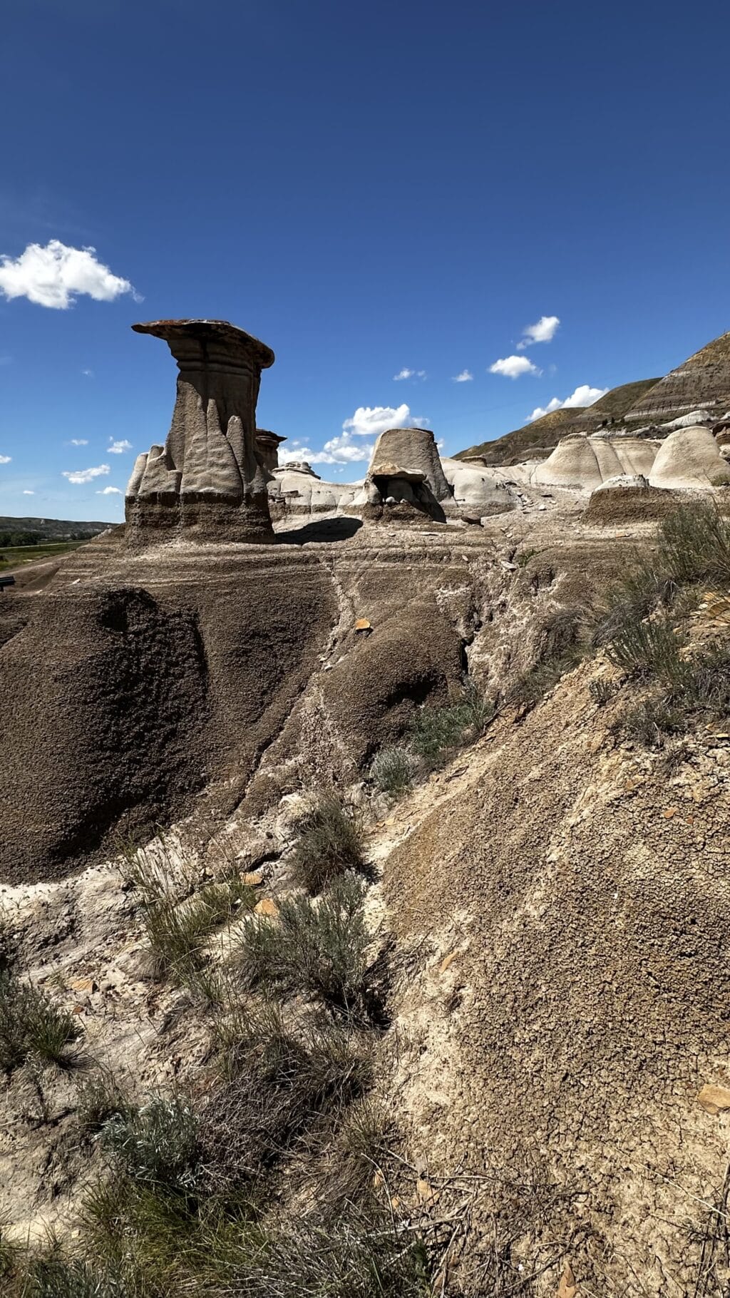Wir lernen die Stadt auf einer Stadtfundfahrt kennen und geniessen die Aussicht vom 191 Meter hohen Tower. Bei ganz klarer Sicht lassen sich in der Ferne bereits die Rocky Mountains erahnen. Bevor wir aber in diese Richtung fahren, führt unsere Reise in die Dinosaurier Stadt Drumheller, wo wir am Folgetag im Royal Tyrell Museum in eine spannende Reise durch die prähistorische Geschichte unseres Planeten eintauchen. Alberta, besonders die Region rund um Drumheller, ist bekannt für die hohe Anzahl an Dinosaurierfossilien. Die Landschaft hier, beispielsweise die bis zu 7 Meter hohen «Hoodos», ist ganz besonders, passend zu diesem Ausflug in vergangene Zeiten.